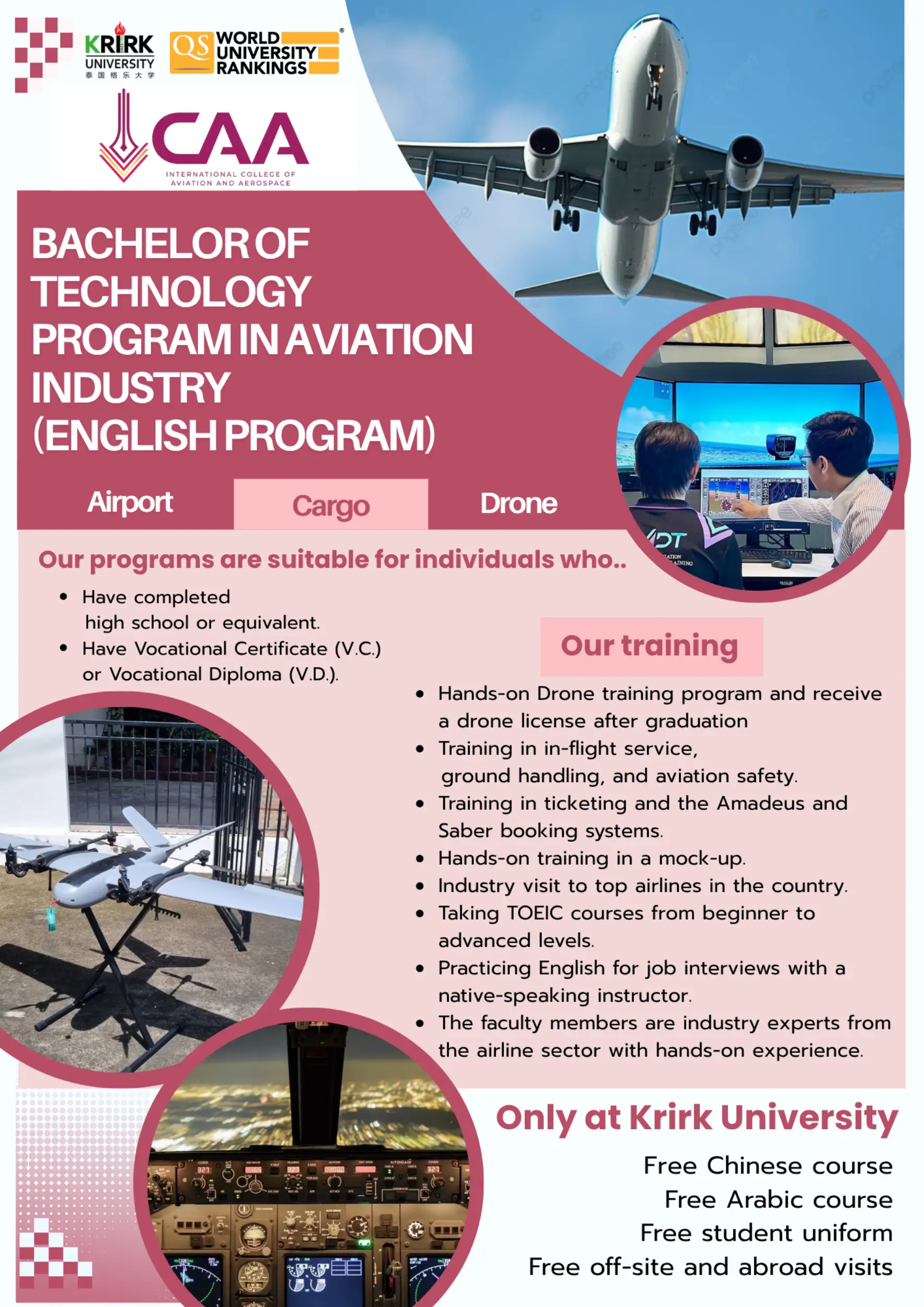 ปริญญาตรี หลักสูตรบริหารธุรกิจบัณฑิต สาขาวิชาการจัดการธุรกิจการบิน อังกฤษ